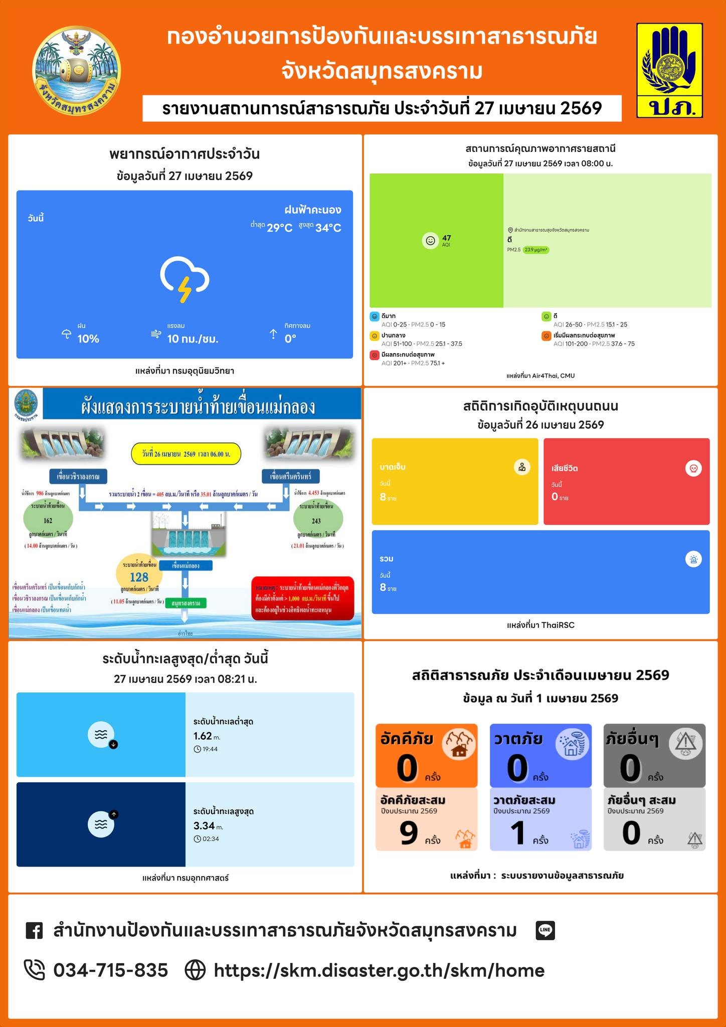 ขอรายงานสถานการณ์สาธารณภัย ประจำวันที่ 27 เมษายน 2569 สรุปได้ดังนี้