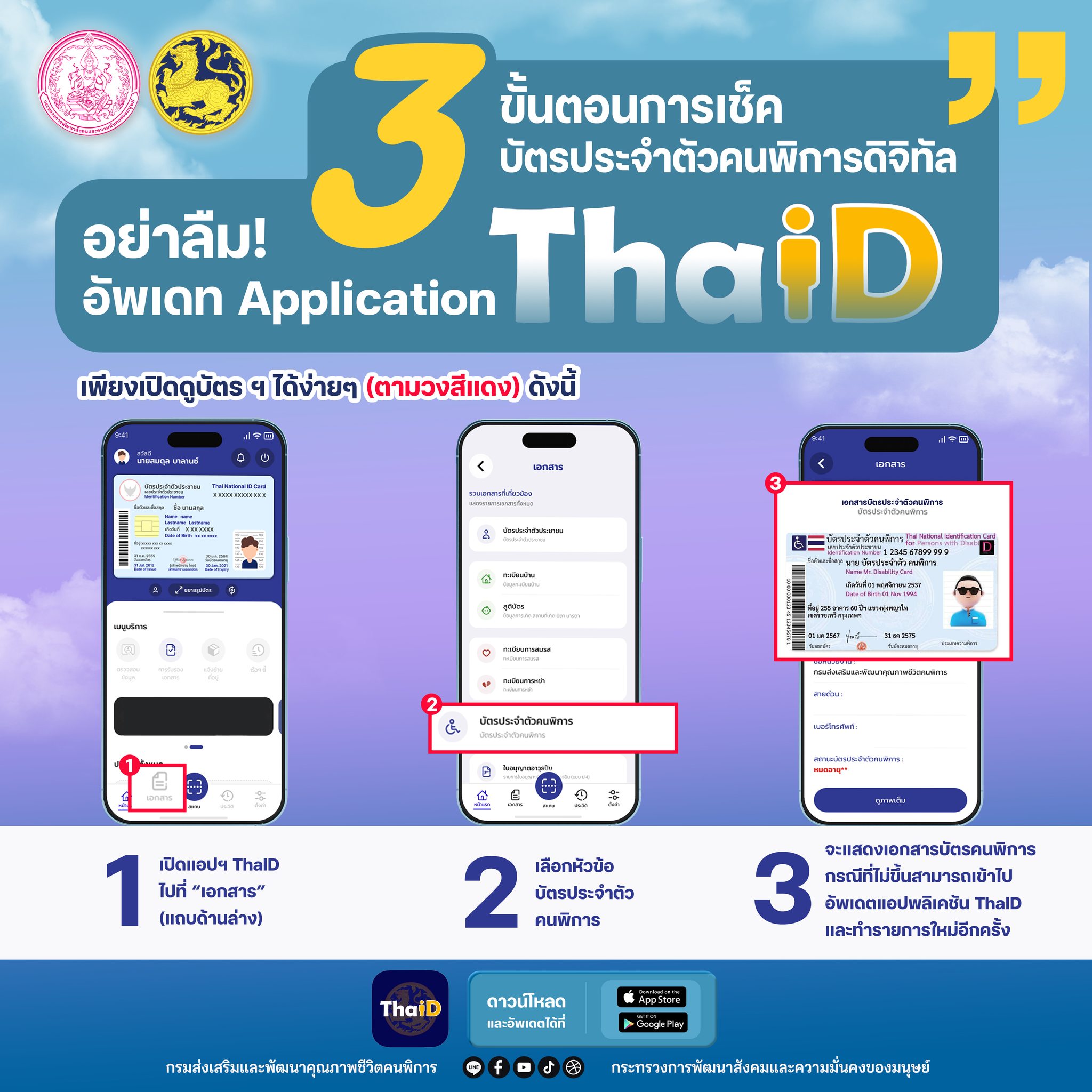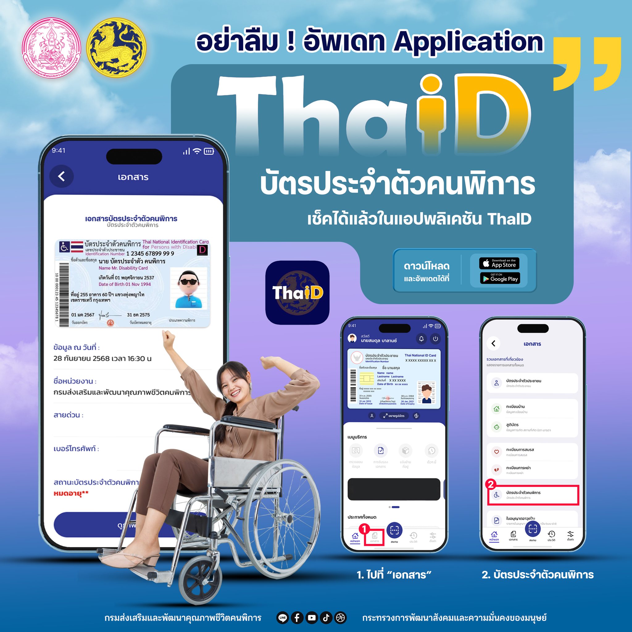 กรมการปกครอง กระทรวงมหาดไทย ได้พัฒนาและเพิ่มฟีเจอร์ใหม่ “บัตรประจำตัวคนพิการดิจิทัล” บนแอปพลิเคชัน ThaID เพื่ออำนวยความสะดวกให้คนพิการสามารถเข้าถึงสิทธิและสวัสดิการของรัฐได้อย่างรวดเร็ว สะดวก และเท่าเทียม
