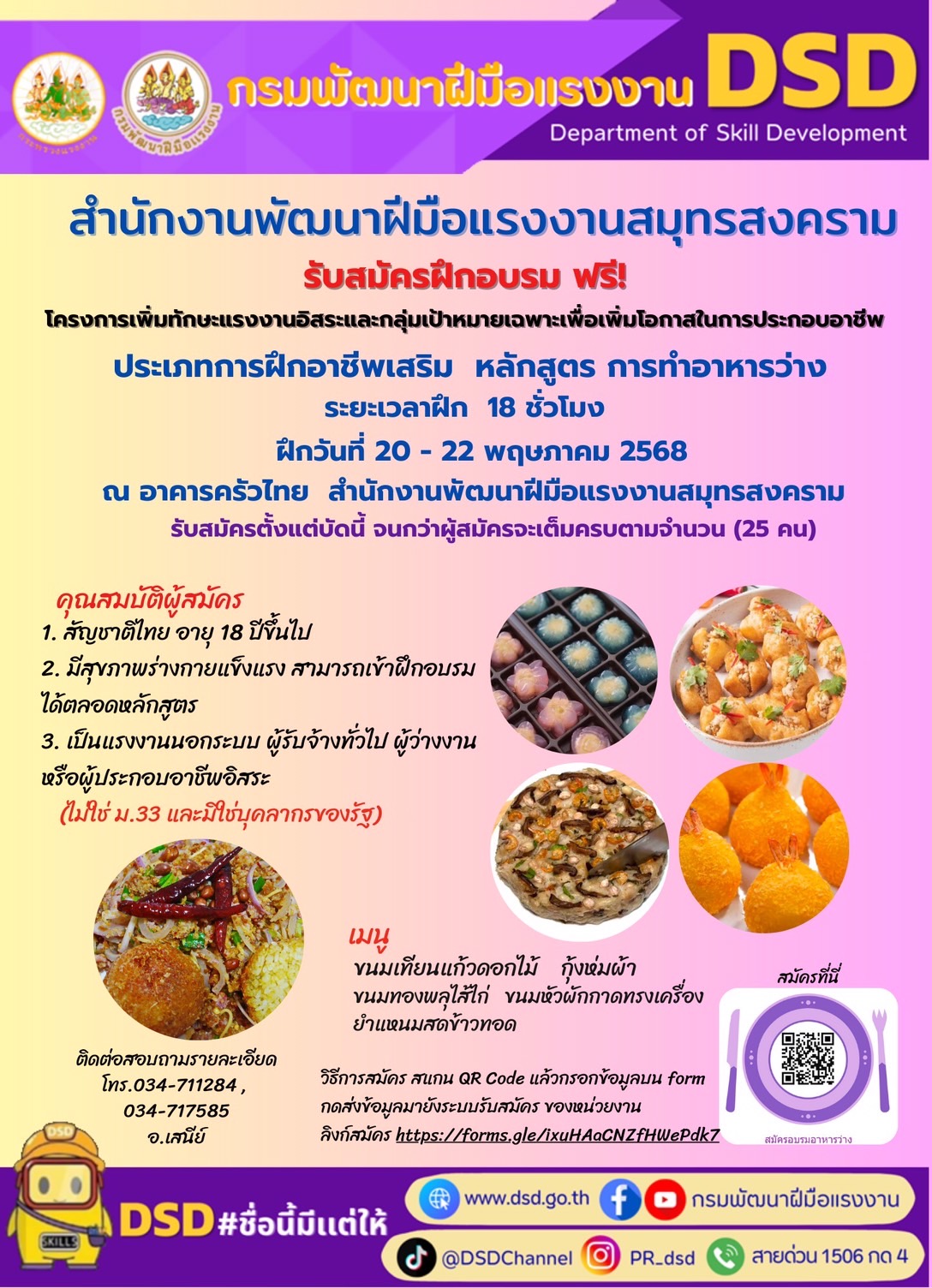 #การทำอาหารว่าง ระยะเวลาฝึก 18 ชั่วโมง