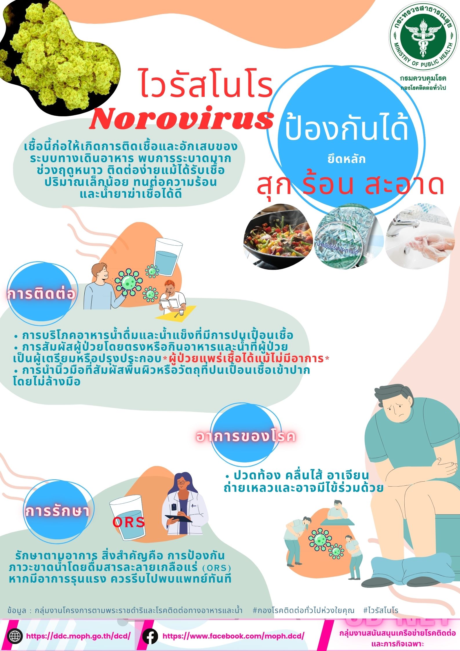กรมควบคุมโรค กระทรวงสาธารณสุข การป้องกันโรคไวรัสโนโร Norovirus